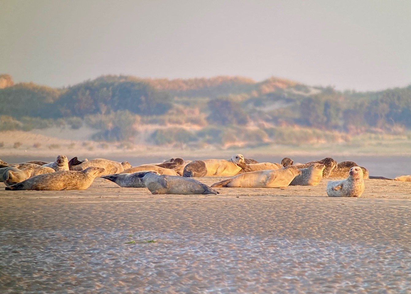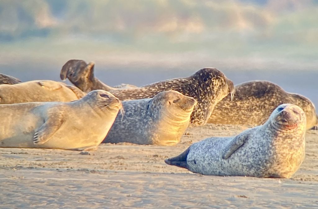 Mit Spektiv und Ferngläsern beobachten wir die Seehunde aus rund 350 Metern Entfernung – ein respektvoller Abstand, der dennoch intensive Naturbeobachtungen ermöglicht.